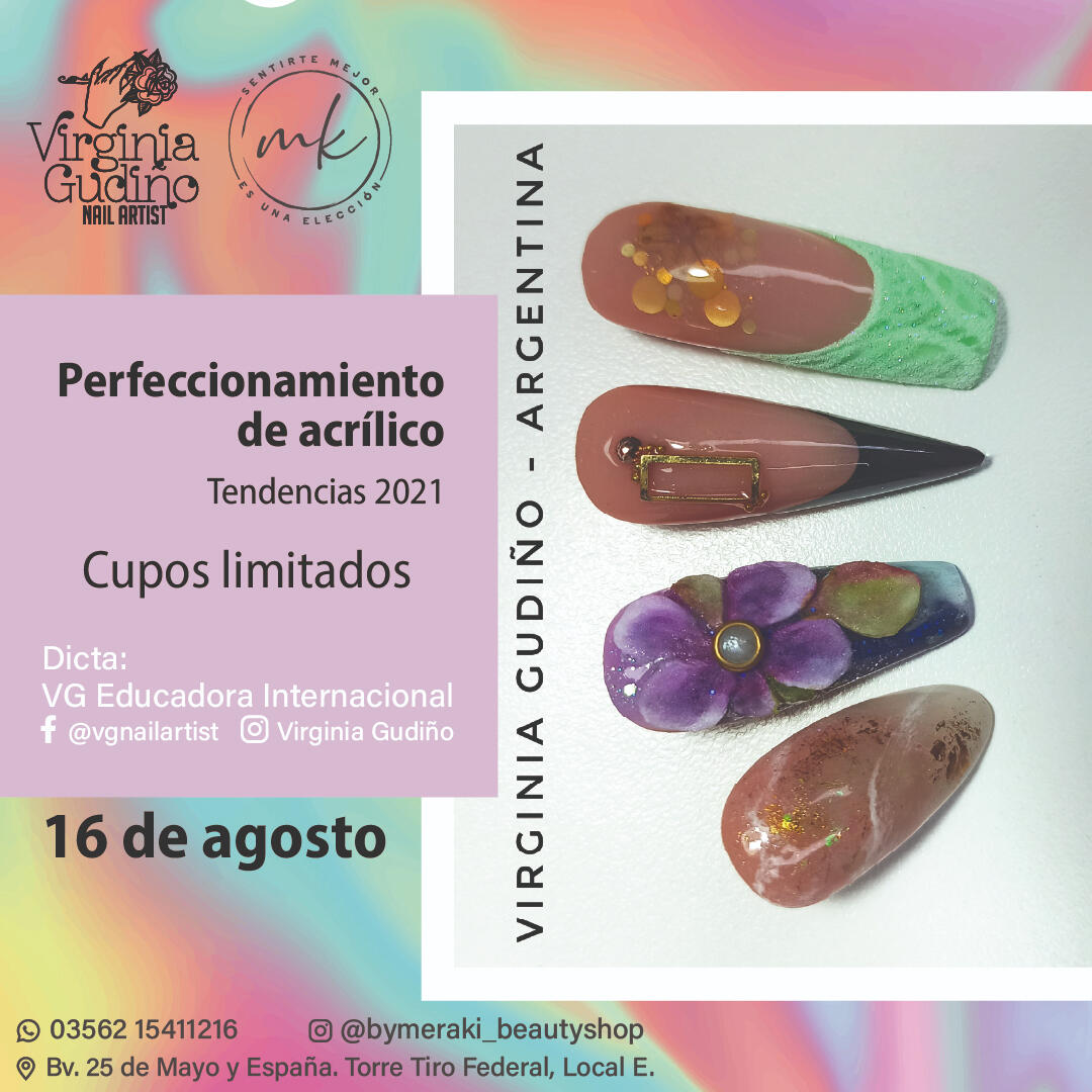 Hago uñas esculpidas/esculturales en acrílico y Techgel/poligel/Acrygel, esmaltado semipermanente, Nail Art, Dry Manicure.También soy Educadora -en constante formación-, y parte del equipo de Organic® Nails Argentina.